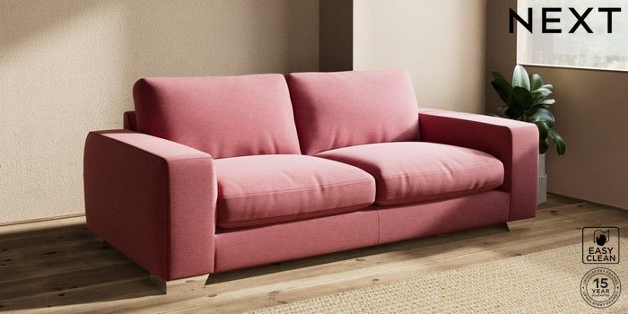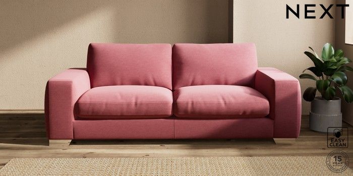 7.2.10 Houghton Deep Relaxed Sit 3 Seater Sofa Fine Chenille Easy Clean Mid Pink Large Square Angle - Chrome Metal | Made Click here to use our website with more accessibility support, for example screen readers