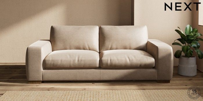7.2.10 Houghton Deep Relaxed Sit 3 Seater Sofa Luxe Chenille Mid Camel Beige Large Square Angle - Mid | Made Click here to use our website with more accessibility support, for example screen readers