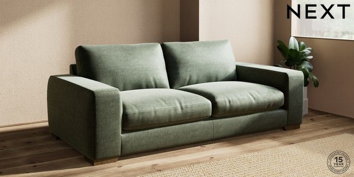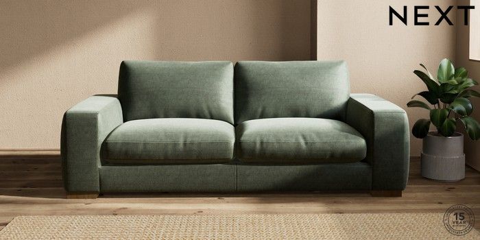 7.2.10 Houghton Deep Relaxed Sit 3 Seater Sofa Luxe Chenille Mid Green Large Square Angle - Mid | Made Click here to use our website with more accessibility support, for example screen readers