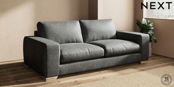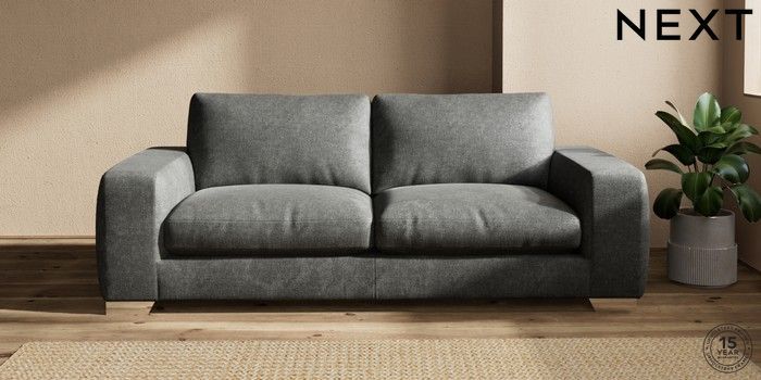 7.2.10 Houghton Deep Relaxed Sit 3 Seater Sofa Plush Chenille Dark Grey Large Square Angle - Chrome Metal | Made Click here to use our website with more accessibility support, for example screen readers