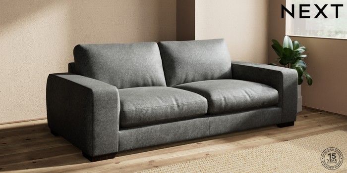 7.2.10 Houghton Deep Relaxed Sit 3 Seater Sofa Plush Chenille Dark Grey Large Square Angle - Dark | Made Click here to use our website with more accessibility support, for example screen readers