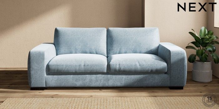 7.2.10 Houghton Deep Relaxed Sit 3 Seater Sofa Plush Chenille Light Blue Large Square Angle - Dark | Made Click here to use our website with more accessibility support, for example screen readers