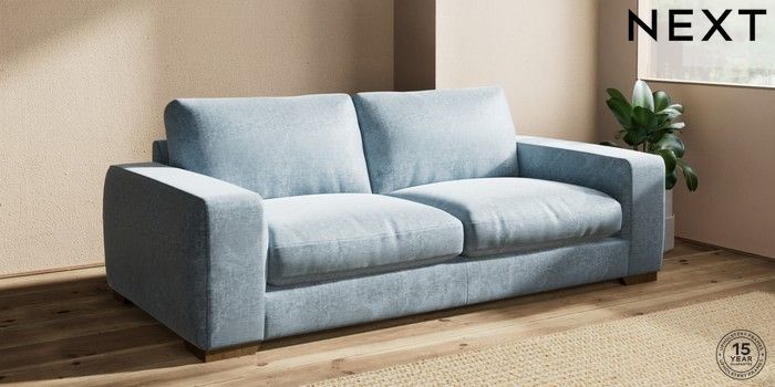 7.2.10 Houghton Deep Relaxed Sit 3 Seater Sofa Plush Chenille Light Blue Large Square Angle - Mid | Made Click here to use our website with more accessibility support, for example screen readers