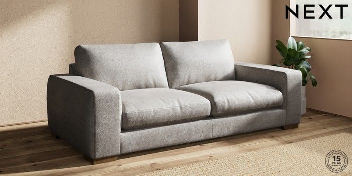 7.2.10 Houghton Deep Relaxed Sit 3 Seater Sofa Plush Chenille Light Grey Large Square Angle - Mid | Made Click here to use our website with more accessibility support, for example screen readers