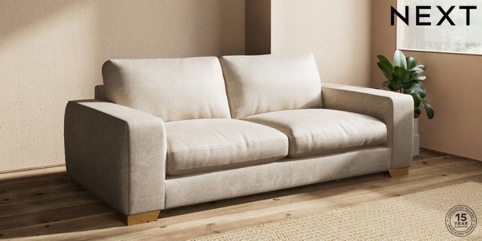 7.2.10 Houghton Deep Relaxed Sit 3 Seater Sofa Plush Chenille Light Natural Large Square Angle - Brushed Brass | Made Click here to use our website with more accessibility support, for example screen readers
