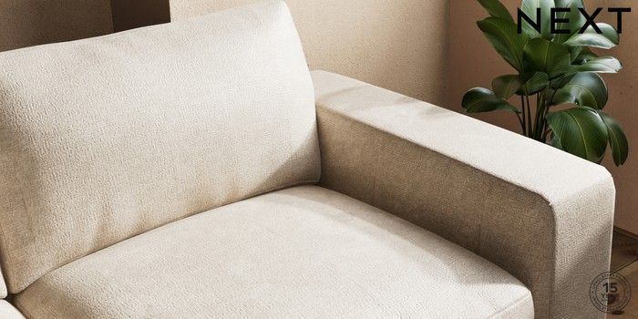 7.2.10 Houghton Deep Relaxed Sit 3 Seater Sofa Plush Chenille Light Natural Large Square Angle - Chrome Metal | Made Click here to use our website with more accessibility support, for example screen readers