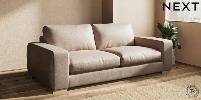 7.2.10 Houghton Deep Relaxed Sit 3 Seater Sofa Plush Chenille Mid Natural Large Square Angle - Light | Made Click here to use our website with more accessibility support, for example screen readers
