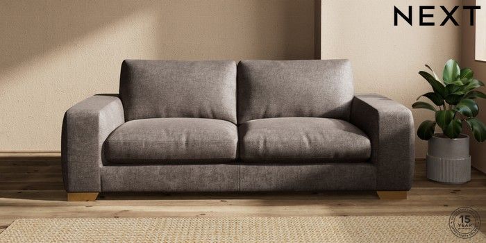 7.2.10 Houghton Deep Relaxed Sit 3 Seater Sofa Plush Chenille Mink Brown Large Square Angle - Brushed Brass | Made Click here to use our website with more accessibility support, for example screen readers