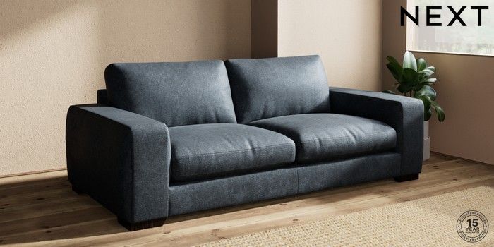 7.2.10 Houghton Deep Relaxed Sit 3 Seater Sofa Plush Chenille Slate Blue Large Square Angle - Dark | Made Click here to use our website with more accessibility support, for example screen readers