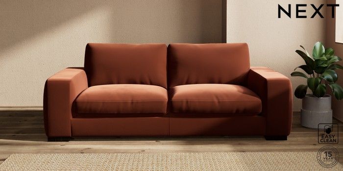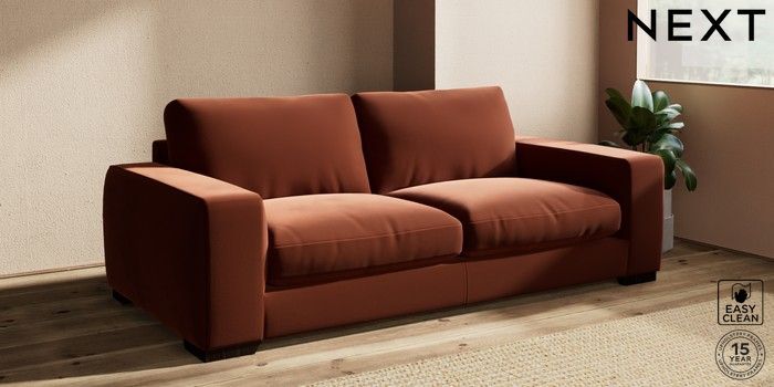 7.2.10 Houghton Deep Relaxed Sit 3 Seater Sofa Plush Velvet Easy Clean Ginger Orange Large Square Angle - Dark | Made Click here to use our website with more accessibility support, for example screen readers