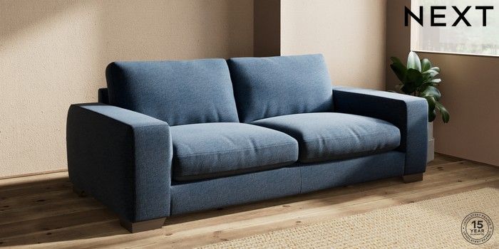7.2.10 Houghton Deep Relaxed Sit 3 Seater Sofa Ripple Chenille Dark Blue Large Square Angle - Gunmetal | Made Click here to use our website with more accessibility support, for example screen readers