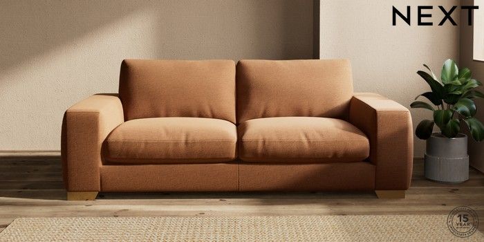 7.2.10 Houghton Deep Relaxed Sit 3 Seater Sofa Ripple Chenille Mid Rust Brown Large Square Angle - Brushed Brass | Made Click here to use our website with more accessibility support, for example screen readers
