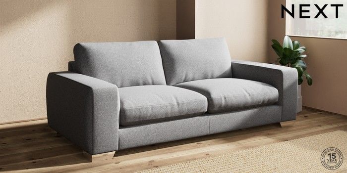 7.2.10 Houghton Deep Relaxed Sit 3 Seater Sofa Studio Chenille Mid Grey Large Square Angle - Chrome Metal | Made Click here to use our website with more accessibility support, for example screen readers