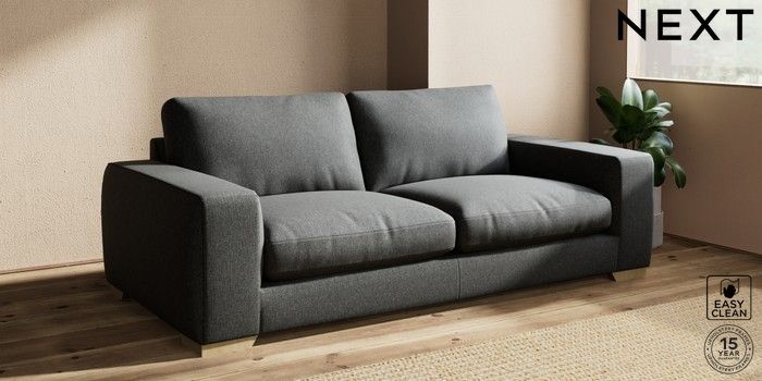 7.2.10 Houghton Deep Relaxed Sit 3 Seater Sofa Tweedy Blend Easy Clean Charcoal Grey Large Square Angle - Light | Made Click here to use our website with more accessibility support, for example screen readers