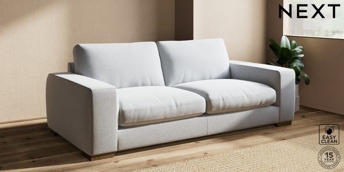 7.2.10 Houghton Deep Relaxed Sit 3 Seater Sofa Tweedy Blend Easy Clean Light Silver Grey Large Square Angle - Mid | Made Click here to use our website with more accessibility support, for example screen readers