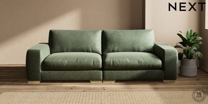 7.2.10 Houghton Deep Relaxed Sit 4 Seater Sofa Boucle Chenille Dark Moss Green Large Square Angle - Light | Made Click here to use our website with more accessibility support, for example screen readers