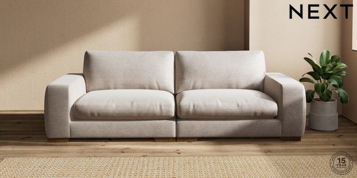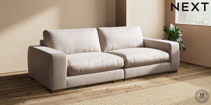 7.2.10 Houghton Deep Relaxed Sit 4 Seater Sofa Boucle Chenille Light Natural Large Square Angle - Mid | Made Click here to use our website with more accessibility support, for example screen readers