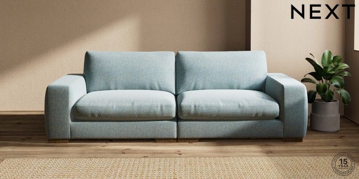 7.2.10 Houghton Deep Relaxed Sit 4 Seater Sofa Chunky Marl Mid Blue Large Square Angle - Mid | Made Click here to use our website with more accessibility support, for example screen readers