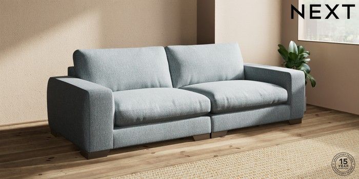7.2.10 Houghton Deep Relaxed Sit 4 Seater Sofa Chunky Weave Mid Blue Large Square Angle - Gunmetal | Made Click here to use our website with more accessibility support, for example screen readers
