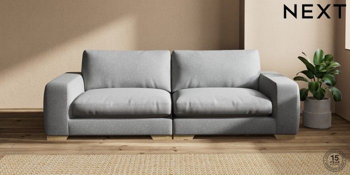 7.2.10 Houghton Deep Relaxed Sit 4 Seater Sofa Chunky Weave Mid Grey Large Square Angle - Light | Made Click here to use our website with more accessibility support, for example screen readers