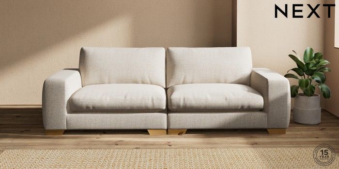 7.2.10 Houghton Deep Relaxed Sit 4 Seater Sofa Chunky Weave Mid Natural Large Square Angle - Brushed Brass | Made Click here to use our website with more accessibility support, for example screen readers