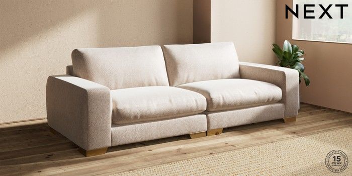7.2.10 Houghton Deep Relaxed Sit 4 Seater Sofa Cotswold Chenille Light Natural Large Square Angle - Brushed Brass | Made Click here to use our website with more accessibility support, for example screen readers