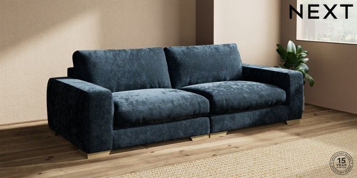 7.2.10 Houghton Deep Relaxed Sit 4 Seater Sofa Distressed Velour Midnight Blue Large Square Angle - Light | Made Click here to use our website with more accessibility support, for example screen readers