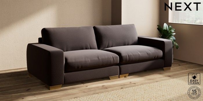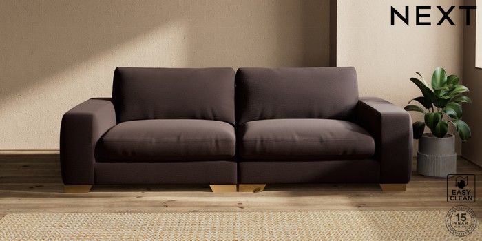 7.2.10 Houghton Deep Relaxed Sit 4 Seater Sofa Fine Chenille Easy Clean Chocolate Brown Large Square Angle - Brushed Brass | Made Click here to use our website with more accessibility support, for example screen readers