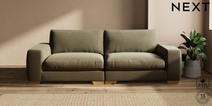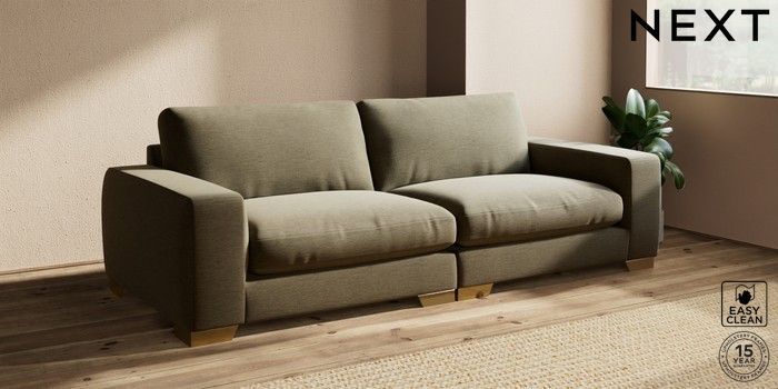 7.2.10 Houghton Deep Relaxed Sit 4 Seater Sofa Fine Chenille Easy Clean Dark Moss Green Large Square Angle - Brushed Brass | Made Click here to use our website with more accessibility support, for example screen readers
