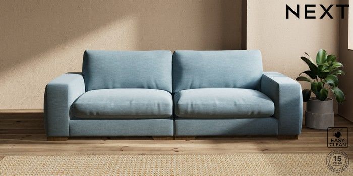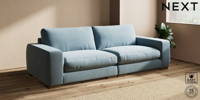 7.2.10 Houghton Deep Relaxed Sit 4 Seater Sofa Fine Chenille Easy Clean Mid Blue Large Square Angle - Mid | Made Click here to use our website with more accessibility support, for example screen readers