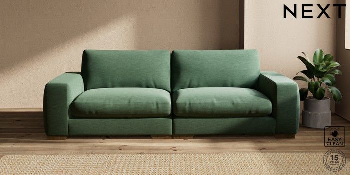 7.2.10 Houghton Deep Relaxed Sit 4 Seater Sofa Fine Chenille Easy Clean Mid Khaki Green Large Square Angle - Mid | Made Click here to use our website with more accessibility support, for example screen readers