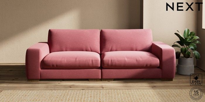 7.2.10 Houghton Deep Relaxed Sit 4 Seater Sofa Fine Chenille Easy Clean Mid Pink Large Square Angle - Mid | Made Click here to use our website with more accessibility support, for example screen readers