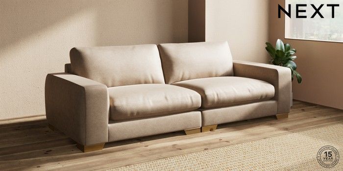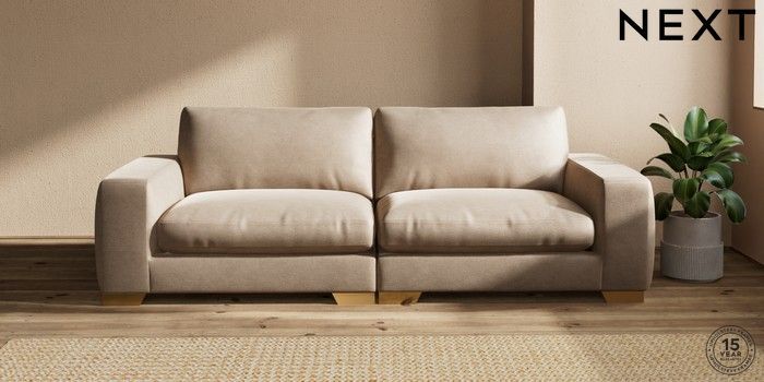 7.2.10 Houghton Deep Relaxed Sit 4 Seater Sofa Luxe Chenille Mid Camel Beige Large Square Angle - Brushed Brass | Made Click here to use our website with more accessibility support, for example screen readers