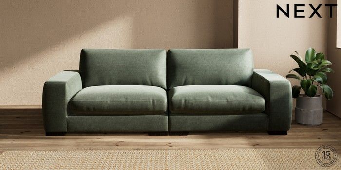 7.2.10 Houghton Deep Relaxed Sit 4 Seater Sofa Luxe Chenille Mid Green Large Square Angle - Dark | Made Click here to use our website with more accessibility support, for example screen readers