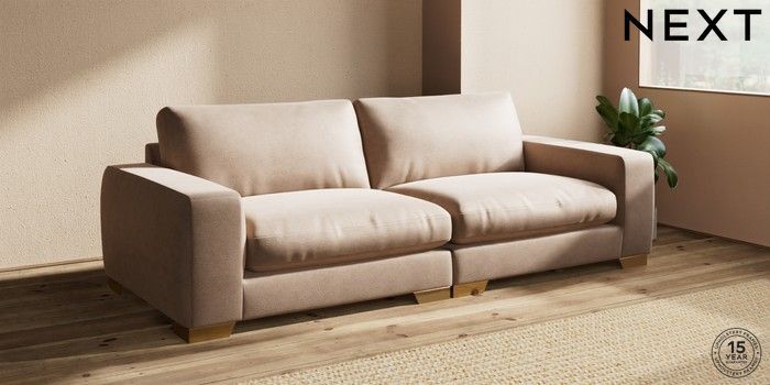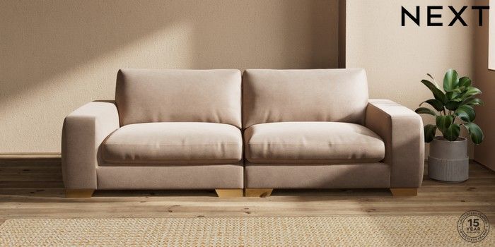 7.2.10 Houghton Deep Relaxed Sit 4 Seater Sofa Luxe Chenille Mid Natural Large Square Angle - Brushed Brass | Made Click here to use our website with more accessibility support, for example screen readers