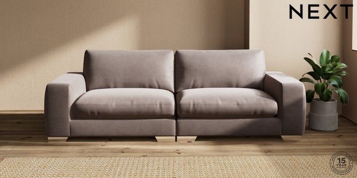 7.2.10 Houghton Deep Relaxed Sit 4 Seater Sofa Luxe Chenille Mink Brown Large Square Angle - Chrome Metal | Made Click here to use our website with more accessibility support, for example screen readers