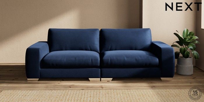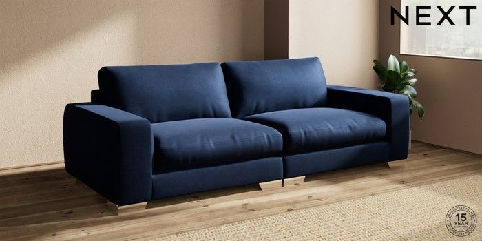 7.2.10 Houghton Deep Relaxed Sit 4 Seater Sofa Luxe Chenille Navy Blue Large Square Angle - Chrome Metal | Made Click here to use our website with more accessibility support, for example screen readers