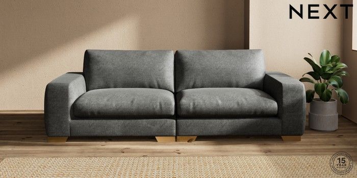 7.2.10 Houghton Deep Relaxed Sit 4 Seater Sofa Plush Chenille Dark Grey Large Square Angle - Brushed Brass | Made Click here to use our website with more accessibility support, for example screen readers