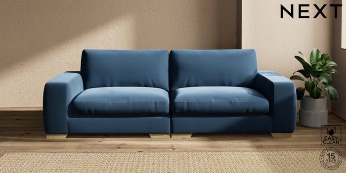 7.2.10 Houghton Deep Relaxed Sit 4 Seater Sofa Plush Velvet Easy Clean Airforce Blue Large Square Angle - Light | Made Click here to use our website with more accessibility support, for example screen readers
