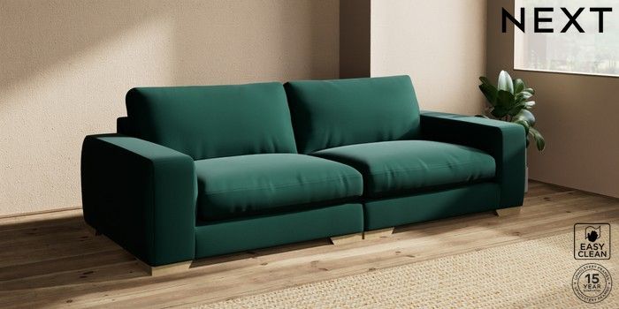 7.2.10 Houghton Deep Relaxed Sit 4 Seater Sofa Plush Velvet Easy Clean Bottle Green Large Square Angle - Light | Made Click here to use our website with more accessibility support, for example screen readers