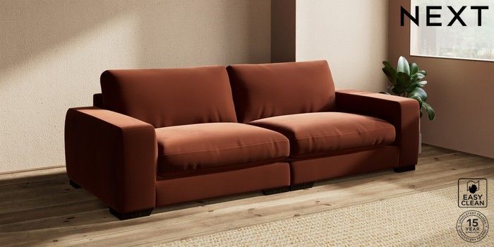 7.2.10 Houghton Deep Relaxed Sit 4 Seater Sofa Plush Velvet Easy Clean Ginger Orange Large Square Angle - Dark | Made Click here to use our website with more accessibility support, for example screen readers