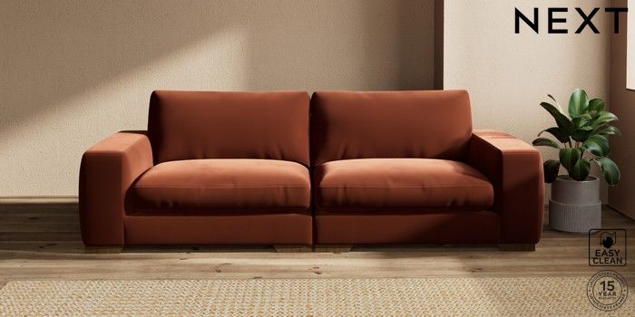 7.2.10 Houghton Deep Relaxed Sit 4 Seater Sofa Plush Velvet Easy Clean Ginger Orange Large Square Angle - Mid | Made Click here to use our website with more accessibility support, for example screen readers
