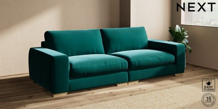 7.2.10 Houghton Deep Relaxed Sit 4 Seater Sofa Plush Velvet Easy Clean Juniper Green Large Square Angle - Light | Made Click here to use our website with more accessibility support, for example screen readers