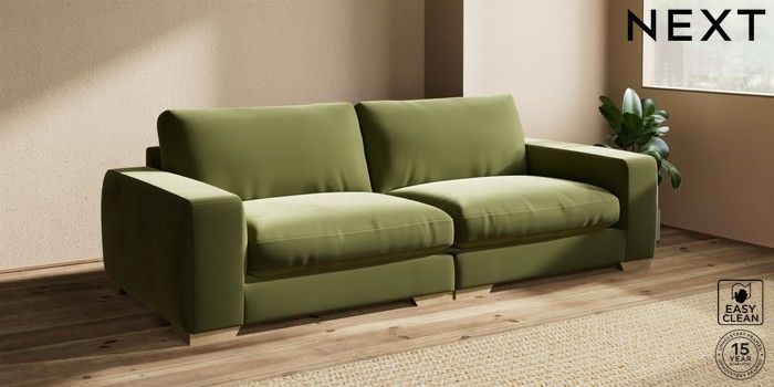 7.2.10 Houghton Deep Relaxed Sit 4 Seater Sofa Plush Velvet Easy Clean Mid Olive Green Large Square Angle - Light | Made Click here to use our website with more accessibility support, for example screen readers