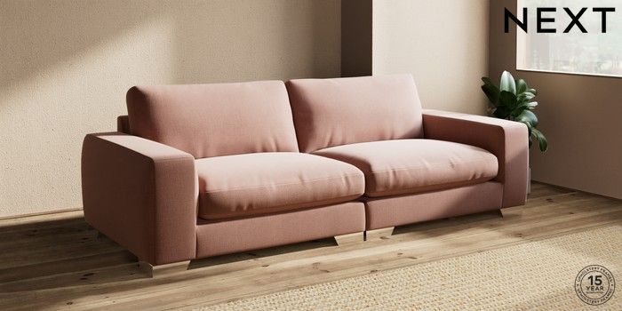 7.2.10 Houghton Deep Relaxed Sit 4 Seater Sofa Relaxed Linen Look Light Rust Brown Large Square Angle - Chrome Metal | Made Click here to use our website with more accessibility support, for example screen readers