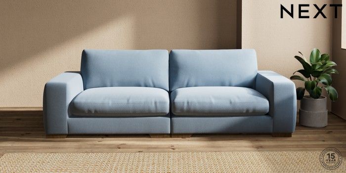 7.2.10 Houghton Deep Relaxed Sit 4 Seater Sofa Relaxed Linen Look Mid Blue Large Square Angle - Mid | Made Click here to use our website with more accessibility support, for example screen readers