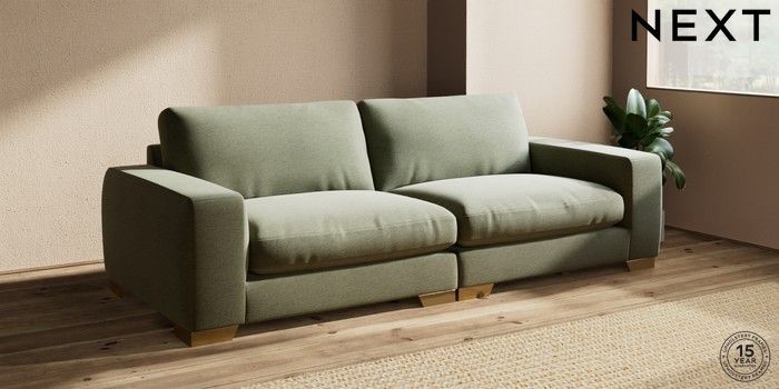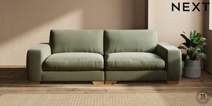 7.2.10 Houghton Deep Relaxed Sit 4 Seater Sofa Ripple Chenille Mid Moss Green Large Square Angle - Brushed Brass | Made Click here to use our website with more accessibility support, for example screen readers