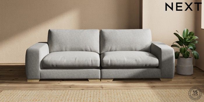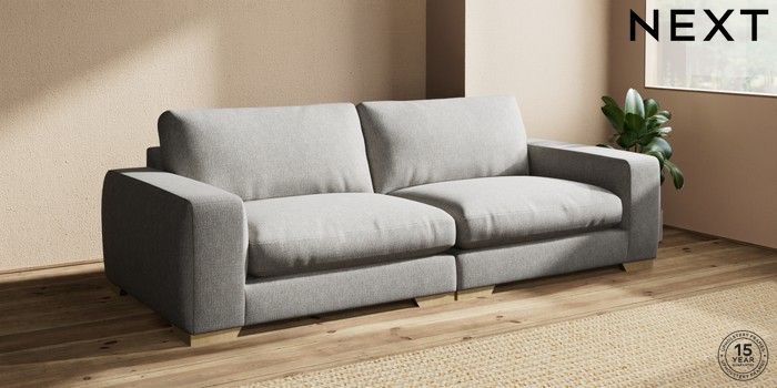 7.2.10 Houghton Deep Relaxed Sit 4 Seater Sofa Tweedy Chenille Mid Grey Large Square Angle - Light | Made Click here to use our website with more accessibility support, for example screen readers