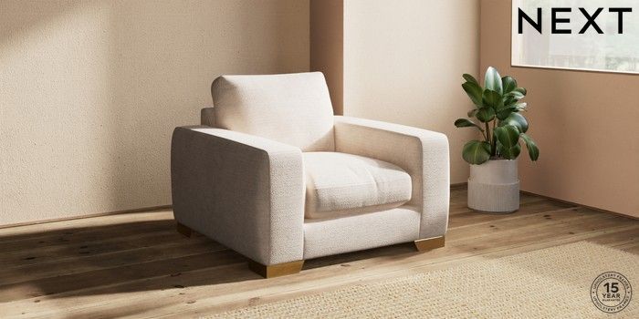7.2.10 Houghton Deep Relaxed Sit Armchair Boucle Chenille Oyster Large Square Angle - Brushed Brass | Made Click here to use our website with more accessibility support, for example screen readers
