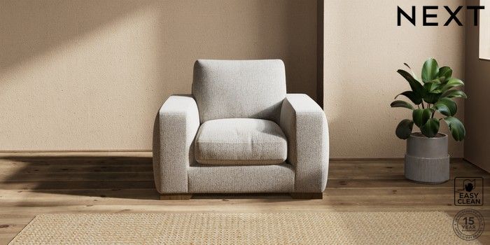 7.2.10 Houghton Deep Relaxed Sit Armchair Chunky Boucle Easy Clean Dove Large Square Angle - Mid | Made Click here to use our website with more accessibility support, for example screen readers